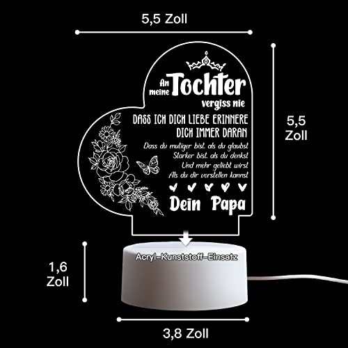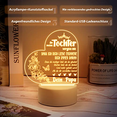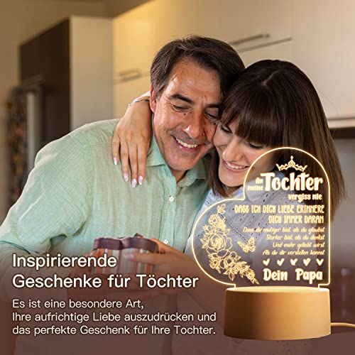 【Tochter Geschenke von Papa】 Dieses Nachtlicht eignet sich perfekt als Geschenk für den Schulabschluss Ihrer Tochter, ein Geschenk für Ihre Tochter zum Schulanfang, ein Geburtstagsgeschenk für Ihre Tochter, ein Weihnachtsgeschenk für Ihre Tochter, ein Geschenk für Ihre Tochter zum Valentinstag, ein Hochzeitsgeschenk für Ihre Tochter und ein Dankeschön-Geschenk. Sie wird es lieben.