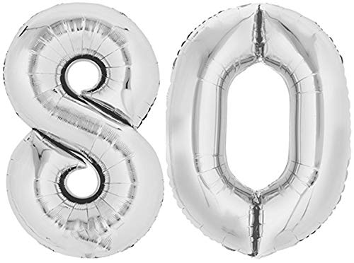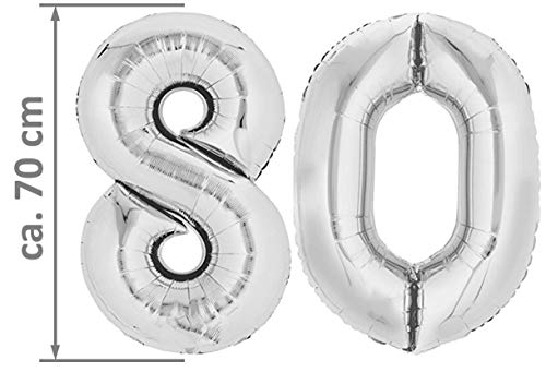 Details: TopTen Folienballon Zahl 80 XL Silber ca. 70 cm hoch – Zahlenballon für Ihre Geburstagsparty, Jubiläum oder sonstige…