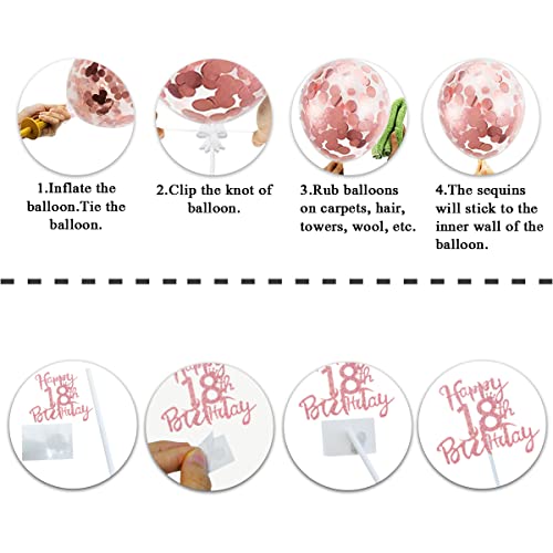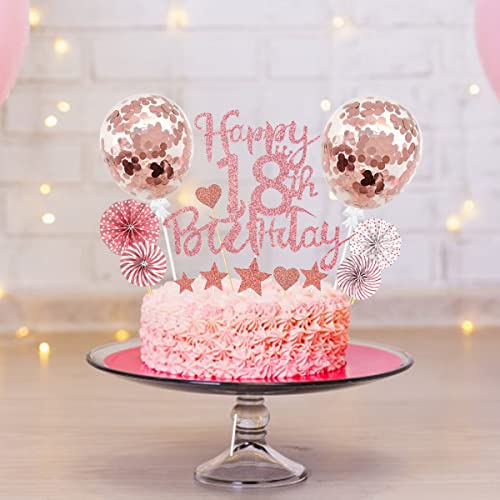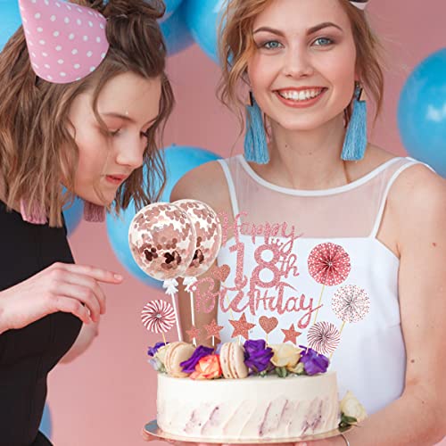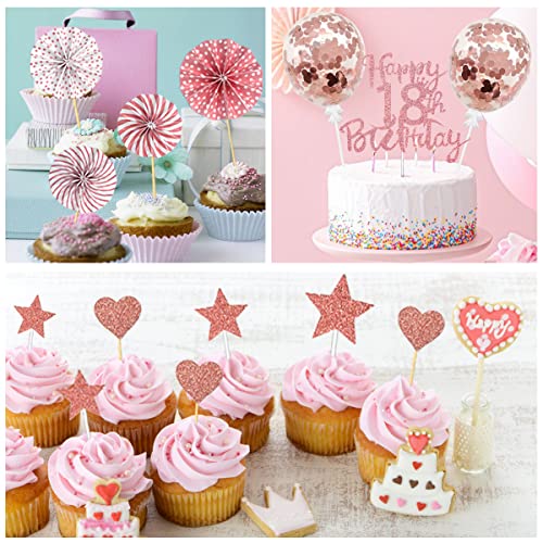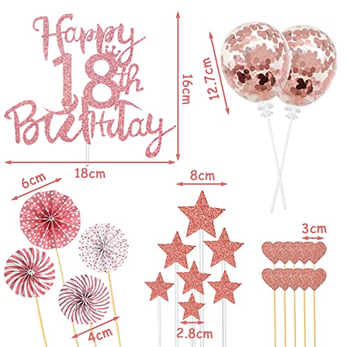 💖【18 Geburtstag tortendeko】2*rosegold luftballons, 1*rosegold topper „Happy 18th Birthday“, 4*papierfächer, 10*tortendekoration in herzform, 7*sterne cake toppers. 24 stück tortendekorationszubehör reichen aus, um Ihren dekorationsbedarf zu decken.