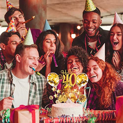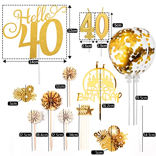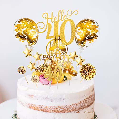 【17 Stück Goldener Geburtstagskuchen Dekoration】: Set enthält: 1 Happy Birthday Castle Tortendekoration + 2 Feuerwerkseinlagen + 1 „Hallo 40“ Papierdekoration + 40. Geburtstagskerze + 2 Paillettenballons + 4 wunderschöne Sonnenblumen + 5 Sterne, diese Tortendekoration bringt garantiert Farbe in Ihren Geburtstag.