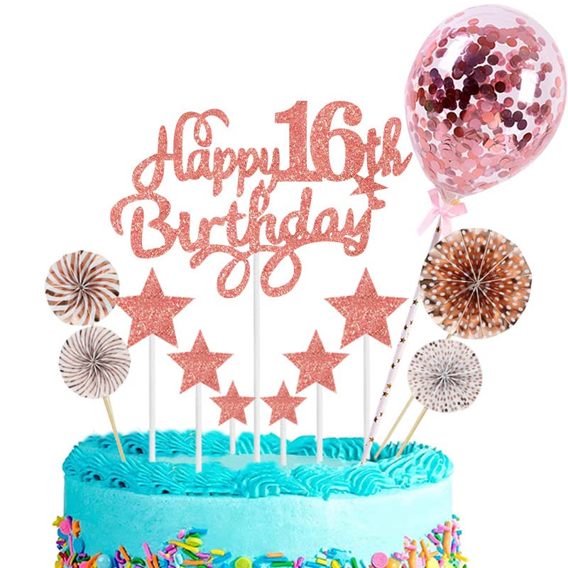 Roségold Tortendeko: Die Rose Gold Geburtstag Nädchen Kuchen Deko, Hergestellt Aus Glitzer Karten, Kombiniert mit der Konfetti-Ballon-Tortenaufsätzen,Geeignet Zum Dekorieren Von Kuchen, Desserts, Muffins, Cupcakes, Gelees, Brot, Obst usw.Um Ihrem Essen Charme zu Verleihen.