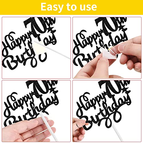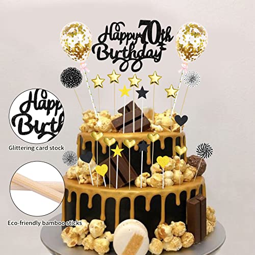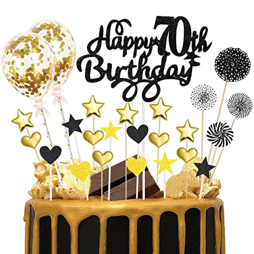 Details: Tortendeko 70 Geburtstag Gold Schwarz, Happy 70th Birthday Cake Topper, Glitzer Kuchendeckel Geburtstag mit Herz Stern…