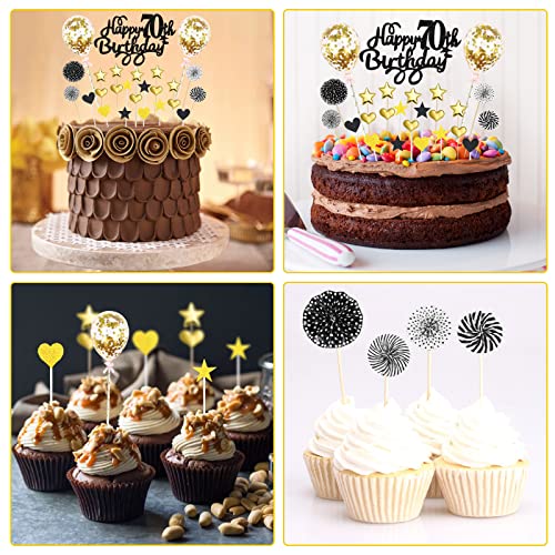 🎁Paket Beinhaltet: Sie erhalten 1 Stück schwarze tortendeko zum Happy 70th Birthday, 2 Stück gold Konfetti Luftballons tortendeko, 7 Stück gold herz tortendeko, 7 Stück gold stern tortendeko, 2 Stück schwarze herz tortendeko, 2 Stück schwarze stern tortendeko, und 4 Stück schwarze Weiß runde Papierfächer tortendeko, Insgesamt 35 Stück. Auffällige schwarze gold geburtstag tortendeko Deko, um Ihre geburtstagsfeier zu feiern.