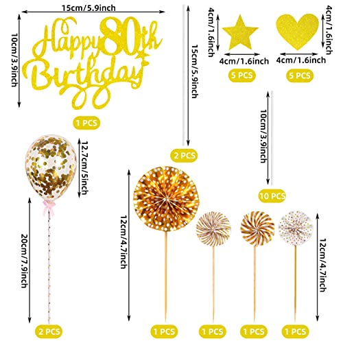 80. Geburtstagstorten Dekorationen: Das Geburtstagstortenaufsatz-Set beinhaltet 1 x Golden „Happy 80th Birthday“-Aufsätze, 5 x Golden Glitzersterne, 5 x Golden Glitzerherzen, 2 x Golden Konfettiballons, 4 x Papierfächer Topper, 13 x Strohhalme.Dieser Golden Geburtstagstortenaufsatz wird Ihre Geburtstagstorte definitiv raffinierter und Ihre Geburtstagsfeier einzigartiger machen.