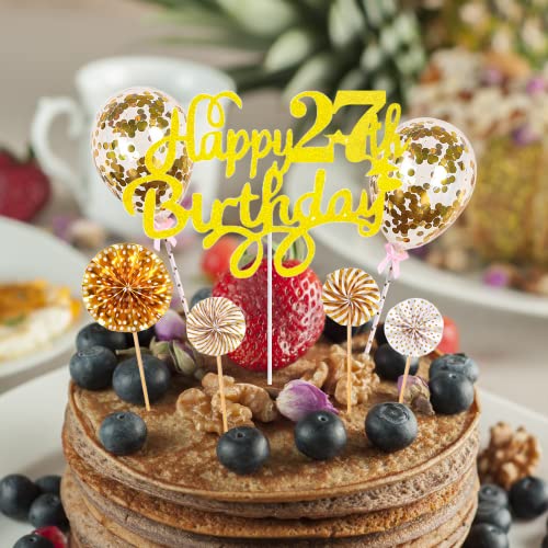 Golden Tortendeko: Die Golden Geburtstag Nädchen Kuchen Deko, Hergestellt Aus Glitzer Karten, Kombiniert mit der Konfetti-Ballon-Tortenaufsätzen, Geeignet Zum Dekorieren Von Kuchen, Desserts, Muffins, Cupcakes, Gelees, Brot, Obst usw. Um Ihrem Essen Charme zu Verleihen.