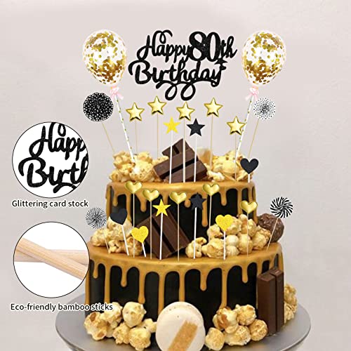 Details: Tortendeko Geburtstag 80 Jahre, Schwarz Gold Happy 80th Birthday Cake Topper, 80. Geburtstag Tortendeko Kuchendeckel mit…