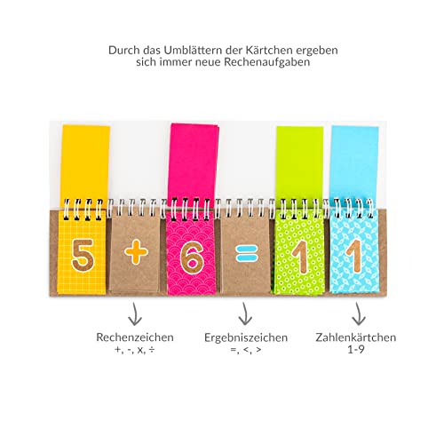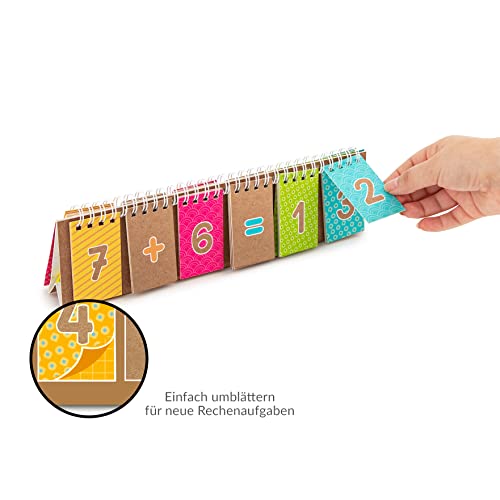 Freude am Lernen ✓ Der Rechenmeister aus stabilem Karton mit Spiralbindung kann kinderleicht aufgestellt werden und ermöglicht spielerisches Lernen und fleißiges Üben – Egal ob in der Vorschule oder Grundschule