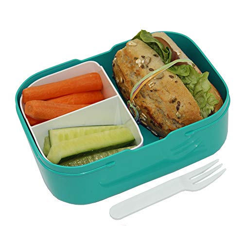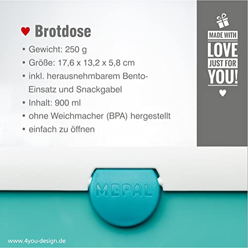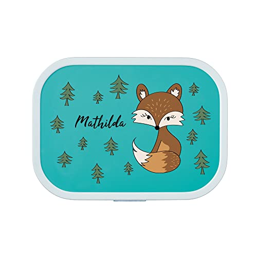 Details: 4youDesign türkise Brotdose mit Fächern -Fuchs- personalisiert mit Namen I Geschenk zur Einschulung für Jungen & Mädchen