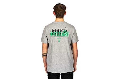 GOTS T-Shirt „WB“ Voll im Trend. Dieses coole Herren Shirt präsentiert sich im sportlichen Look und ist der perfekte Kombi-Partner für coole Werder-Styles.Die Werder-Raute als Web-Patch auf dem rechten Ärmel macht dieses Kurzarm-Shirt zu einem echten Hingucker. Das Shirt punktet durch den „#WEDARE“-Schriftzug als Druck in Grün auf der linken Brustseite sowie auf der Nackeninnenseite und unterhalb des Kragens. Die Rückseite des T-Shirts wartet mit einem speziellen Highlight auf euch: Ein großes Fan-Motiv bestehend aus vier grünen Tischkickern, einem Spieler in Aktion, der gedruckten Werder-Raute und vielen weiteren Werder-Details. Bester Tragekomfort verleiht diesem Shirt mit kurzen Armen den letzten Schliff. Zudem ist das T-Shirt ausgezeichnet mit dem GOTS-Label, dem Global Organic Textile Standard, welches die Anforderungen an eine ökologisch- und sozialverträgliche Textilproduktion von biologisch erzeugten Rohstoffen unterliegt. Besonderheiten: Werder-Raute als Web-Patch auf dem rechten Ärmel gedruckter „#WEDARE“-Schriftzug in Grün auf der linken Brustseite gedruckter „#WEDARE“-Schriftzug in Grün als Nacken-Innendruck großes Werder-Motiv als Druck auf der Rückseite ausgezeichnet mit dem Global Organic Textile Standard (GOTS), zertifiziert durch BCS, Lizenz Nr. 35062 Material: 100% Baumwolle aus kontrolliert biologischem Anbau Farbe: Hellgrau melange
