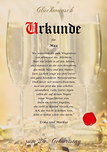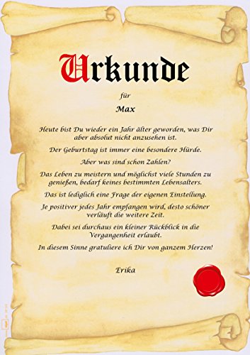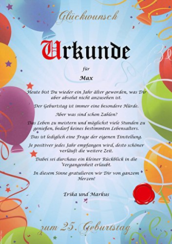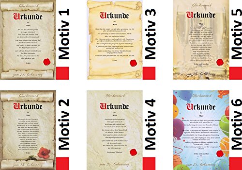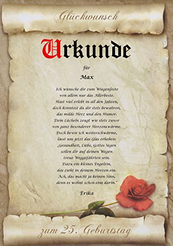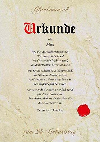 Geschenkidee persönlich, personalisiert & individuell: Jede Urkunde ist einmalig und somit ein Unikat. Es sind alle Textformen verfügbar. Unsere Texte sind urheberrechtlich geschützt und nur bei uns erhältlich.
