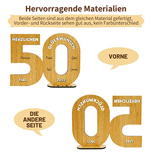 Einzigartiges Design: Dieses „50“ geformte Holzbrett hat eine Größe von 25x18cm und eine Dicke von 5mm und 8mm und kann überall im Haus aufrecht stehen. Die Oberseite des Ständers macht es einfach, Kerzen in verschiedenen Größen zu platzieren oder Geld aufzurollen, um es darauf einzusetzen, was es zu einem lustigen Geldgeschenk macht.