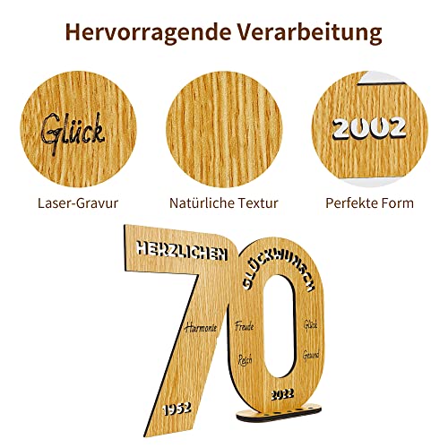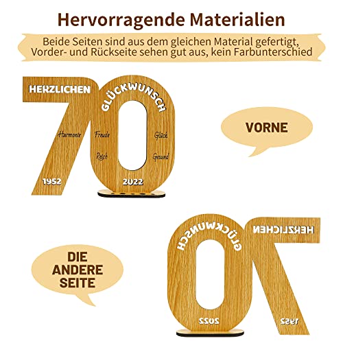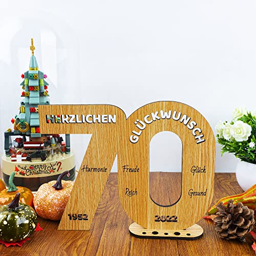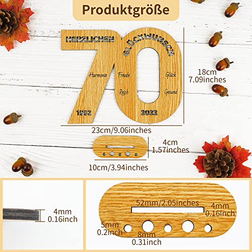 Einzigartiges Design: Dieses „70“ geformte Holzbrett hat eine Größe von 24x18cm und eine Dicke von 5mm und 8mm und kann überall im Haus aufrecht stehen. Die Oberseite des Ständers macht es einfach, Kerzen in verschiedenen Größen zu platzieren oder Geld aufzurollen, um es darauf einzusetzen, was es zu einem lustigen Geldgeschenk macht.