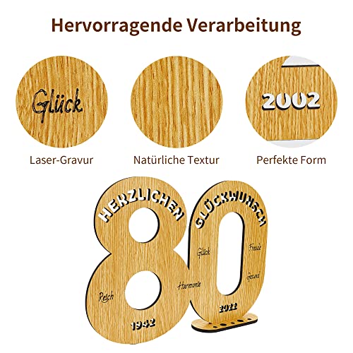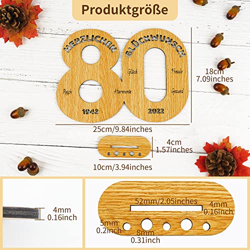 Einzigartiges Design: Dieses „80“ geformte Holzbrett hat eine Größe von 24x18cm und eine Dicke von 5mm und 8mm und kann überall im Haus aufrecht stehen. Die Oberseite des Ständers macht es einfach, Kerzen in verschiedenen Größen zu platzieren oder Geld aufzurollen, um es darauf einzusetzen, was es zu einem lustigen Geldgeschenk macht.