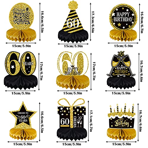 60. Geburtstag dekoration besteht aus 9 verschiedenen mustern von wabenpapier-mittelstücken, 8 goldenen basen und 8 schwarzen basen. leuchtenden farben und auffälligen schriftarten dekorieren Ihr zuhause und Ihre partys mit unseren wabendekorationen, die auf Ihren partys sehr beliebt sein werden.