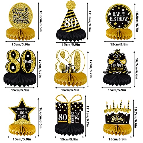 80. Geburtstag dekoration besteht aus 9 verschiedenen mustern von wabenpapier-mittelstücken, 8 goldenen basen und 8 schwarzen basen. leuchtenden farben und auffälligen schriftarten dekorieren Ihr zuhause und Ihre partys mit unseren wabendekorationen, die auf Ihren partys sehr beliebt sein werden.