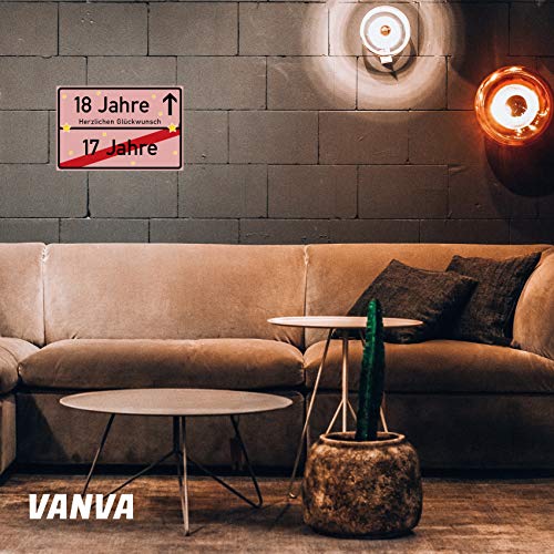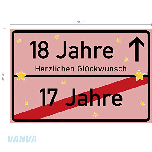 Details: vanva 18 Jahre Party Deko Schild für den 18 Geburtstag Mädchen und Jungen Herzlichen Glückwunsch Spruch im Ortsschild…