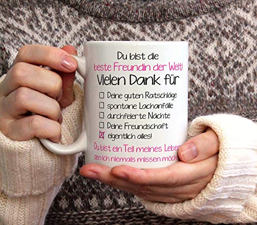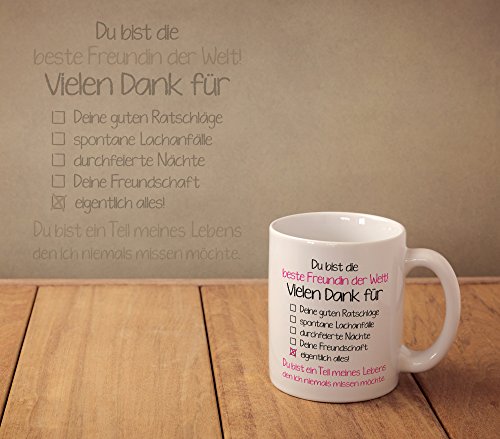Details: vanVerden Tasse – Weltbeste Freundin – BFF – tolle Frau – Beste Freundin – Liste Rot Pink – beidseitig Bedruckt…