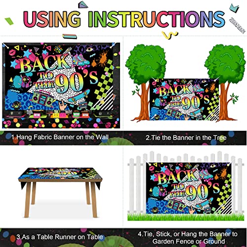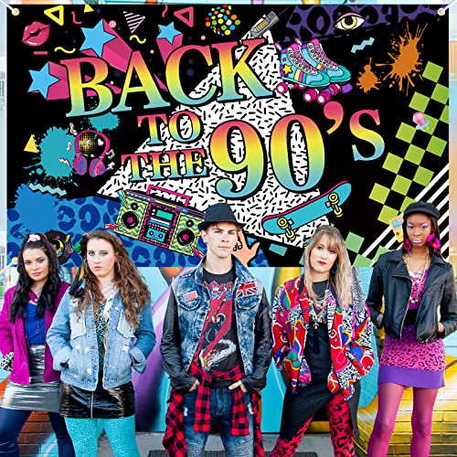 ZURÜCK ZU DEN 90er BANNER: Dieses Paket enthält ein großes Banner mit dem Motto „Back to 90s“ und eine Rolle Seil. Die Banner sind in Retro Farben gehalten und mit vielen 90er Jahre Elementen dekoriert, die Sie in die 90er Jahre zurückversetzen.