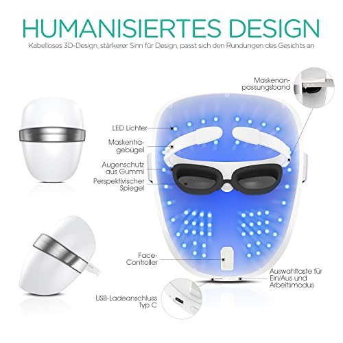 Sicher zu benutzen – Eine eng anliegende Augenschutzmaske wurde speziell entwickelt, um die Reizung der Augen durch helles Licht zu verringern. Die Lichttherapiemaske verwendet außerdem die neueste Lichtbestrahlungstechnologie und hochwertige Materialien.
