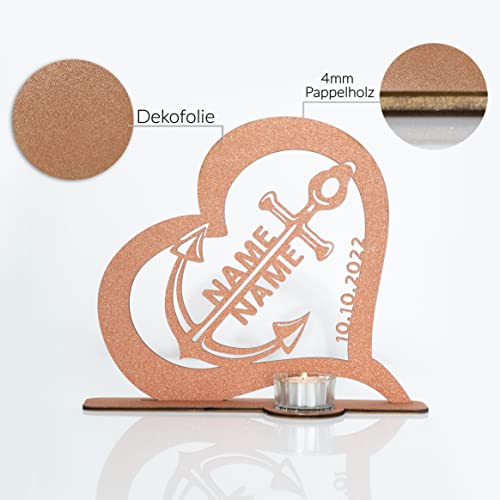 Details: Waluna® Hochzeitsgeschenk Teelichthalter personalisiert mit Namen und Datum Liebesgeschenk Herz Individuelles Geschenk…