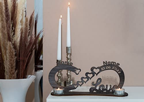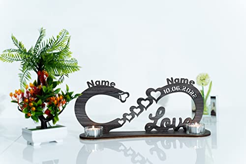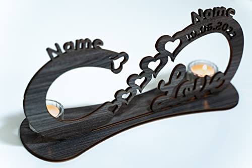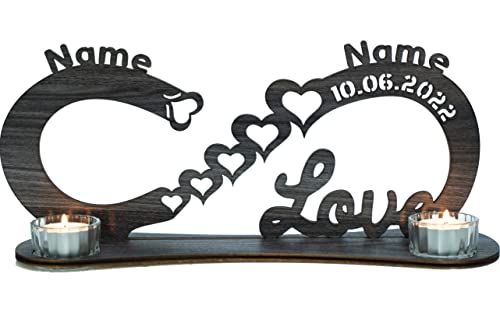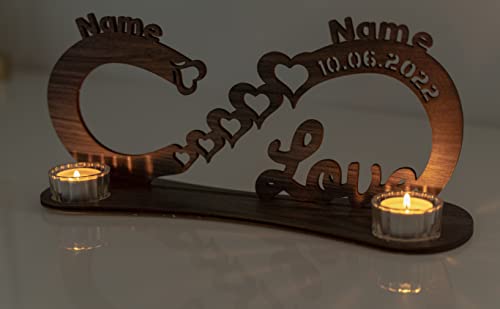 Details: Waluna® Love Liebesgeschenk Teelichthalter Unendlichkeitszeichen personalisiert mit Zwei Namen und Datum Herzen zum…