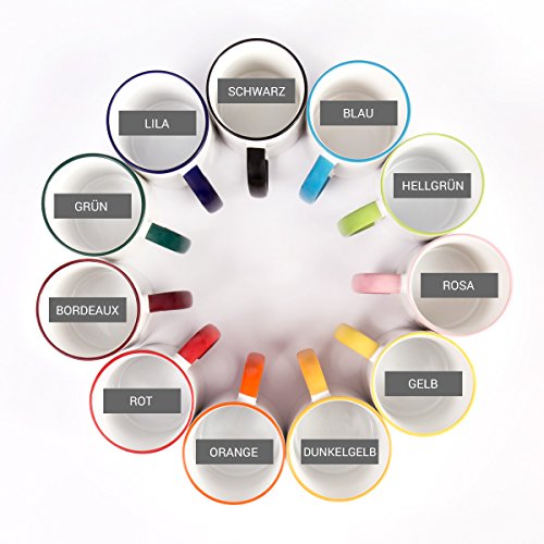Tasse mit farbigem Henkel in Ihrer Wunschfarbe. Sie können aus 12 Farben frei wählen.
