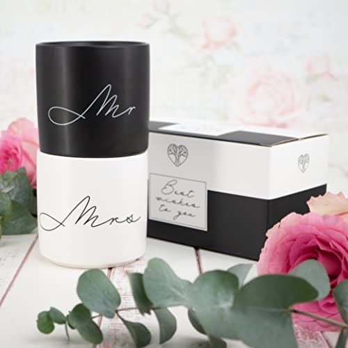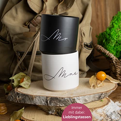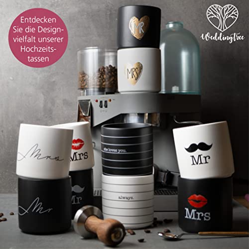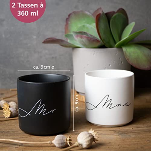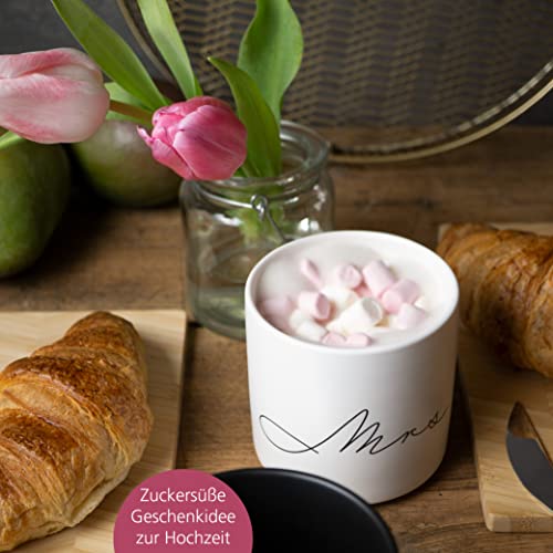 KOMPLETT IM SET – WeddingTree 2er-Set Hochzeitstassen für Brautpaar, Motiv Mr und Mrs, je 9 cm H, 9 cm Ø, 300 g, Fassungsvermögen je 380ml