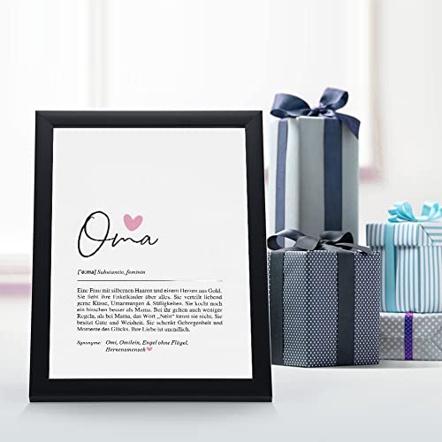 GESCHENKE FÜR OMA – omageschenke Poster mit Worterklärungen wie im Definition Duden als Wanddeko / Dekoration und oma Geschenk,Verschenke unsere Kunstdrucke an Deine oma und verschönere damit das Schlafzimmer, Wohnzimmer, Küche, Büro oder Badezimmer.