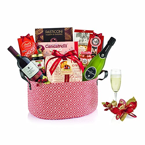 Als zeitlose Geschenkidee zu Weihnachten ist der Korb mit typischen süßen und/oder herzhaften Lebensmitteln jedes Jahr ein großer Erfolg bei Freunden, Verwandten und Mitarbeitern in Italien. Dieser besondere Geschenkkorb wird in Italien von der Firma Villa Guelfa hergestellt und enthält die folgenden Spezialitäten: Handverpackter klassischer Mailänder Panettone Tre Marie, 750g / Flasche Jahrgangssekt Brut 2020 Cantine Cav. Ceste, 750ml / Flasche Cabernet Cantine Cav. Ceste, 750ml / Packung Gnocchetti, Nudeln L’Antica Madia, 250g / Glas Pastasauce mit frischen Tomaten aus der Emilia Romagna Le Conserve della Nonna, 190g / Schachtel Zartbitterschokolade-Gebäck, 100g / Glas Marmelade Schwarzkirsche Capricci di Gola, 220g / Karton Edelkaffee Corsini Blend, 100g / Dose feine Canestrellini-Kekse, 125g / Ballotin Schokoladenpralinen mit Füllung Lindor Lindt, 112 g. Behälter: Mehrzweck-Behälter aus Stoff, mit Griffen. Kühl, trocken, geruchsfrei und vor Licht und Wärmequellen geschützt lagern. Das Verfallsdatum, die Chargennummer und die Hinweise des Herstellers für jedes Produkt finden Sie auf der Innenseite der Verpackung. Allergene: Gluten, Milch, Eier, Sulfite, Nüsse, Soja, Sellerie, Schalentiere. Die Stärke der Körbe der Villa Guelfa ist die Aufmerksamkeit und das Vergnügen bei der Auswahl der besonderen Speisen und Weine. Das Unternehmen wählt nicht nur Delikatessen etablierter Marken aus, sondern engagiert sich auch bei der Erforschung von Lebensmittelspezialitäten, die von kleinen Produzenten vertrieben werden und noch wenig bekannt sind.