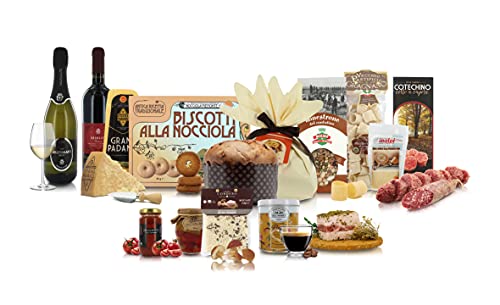 Als zeitlose Geschenkidee zu Weihnachten ist der Korb mit typischen Lebensmitteln jedes Jahr ein großer Erfolg bei Freunden, Verwandten und Mitarbeitern in Italien. Dieser besondere Geschenkkorb wird in Italien von der Firma Villa Guelfa hergestellt und enthält die folgenden Spezialitäten: Handverpackter klassischer Mailänder Panettone Tre Marie, 750g / Flasche Brut Jahrgangssekt 2020 Cantine Cav. Ceste, 750ml / Flasche Wein Merlot Cantine Cav. Ceste, 750ml / Schmalzscheibe mit Kräutern Salumificio Gonella, ca. 200g / Stück gereifter Bra Duro d’Alpeggio DOP (g. U. Käse) Inalpi, 150g / 100 % italienische Salami Salumificio Gonella, ca. 125g / Stück Grana P. DOP (g. U. Käse) Virgilio, 150g / gedämpfter Cotechino Salumificio Vecchi, 400g / Beutel Glücksbringer-Linsen Molino Borgo S. Dalmazzo, 150g / Schachtel Kekse mit g.g.A. Piemont Haselnüssen, 90g / Paket Paccheri, Pasta di Gragnano IGP (g. g. A. Nudeln) Il Vecchio Pastificio di Gragnano, 250g / Glas Pastasauce mit Gemüse Saporie, 185g / Glas Paprika-Vorspeise Bontaloro, 285g / Dose Kaffee Pure Arabica „Brasil“ Corsini, 125g / Paket Risotto mit Steinpilzen Cordero, 160g. Behälter: rechteckiger Korb aus lackiertem Korbgeflecht mit Holzgriffen. Kühl, trocken, geruchsfrei und vor Licht und Wärmequellen geschützt lagern. Das Verfallsdatum, die Chargennummer und die Hinweise des Herstellers für jedes Produkt finden Sie auf der Innenseite der Verpackung. Allergene: Gluten, Milch, Eier, Sulfite, Nüsse, Soja, Sesam, Senf, Lupinen. Die Stärke der Körbe der Villa Guelfa ist die Aufmerksamkeit und das Vergnügen bei der Auswahl der besonderen Speisen und Weine.