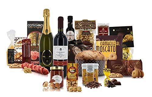 Als zeitlose Geschenkidee zu Weihnachten ist der Korb mit typischen Lebensmitteln jedes Jahr ein großer Erfolg bei Freunden, Verwandten und Mitarbeitern in Italien. Dieser besondere Geschenkkorb wird in Italien von der Firma Villa Guelfa hergestellt und enthält die folgenden Spezialitäten: Handverpackter klassischer Mailänder Panettone Tre Marie, 750g / Flasche süßer Jahrgangssekt 2020 Cantine Cav. Ceste, 750ml / Flasche Cabernet-Wein Cantine Cav. Ceste, 750ml / 100 % italienische Salami Salumificio Gonella, ca. 125g / gedämpfte Cotechino Salumificio Vecchi, 400g / Beutel Glücksbringer-Linsen Molino Borgo S. Dalmazzo, 150g / Flasche Balsamico-Essig aus Modena (g.g.A) Varvello, 250ml / Packung Pasta di Gragnano (g.g.A. Nudeln) I Fidanzati Capresi Il Vecchio Pastificio di Gragnano, 250g / Dose Pastasauce mit Pilzen der Abbazia S. Frontiniano, 290g / Packung Polenta Bramata Cordero, 250g / Schachtel Moscato-Wein-Kekse, 90g / Packung Pralinen mit Moscato d’Asti DOCG Mandrile & Melis, 120g / Schachtel Cantuccini-Kekse 100g / traditionelle Tarallini Nonna Marietta, 100 g / Extra Dunkle Schokotafel Caffarel, 80g / Monoarabica Kaffeepulverdose Illycaffè, 125 g. Behälter: rechteckiger Weidenkorb mit Stoffwebung. Kühl, trocken, geruchsfrei und vor Licht und Wärmequellen geschützt lagern. Das Verfallsdatum, die Chargennummer und die Hinweise des Herstellers für jedes Produkt finden Sie auf der Innenseite der Verpackung. Allergene: Gluten, Milch, Eier, Sulfite, Nüsse, Soja, Sesam, Senf, Lupinen, Sellerie, Fisch. Die Stärke der Körbe der Villa Guelfa ist die Aufmerksamkeit und das Vergnügen bei der Auswahl der besonderen Speisen und Weine.