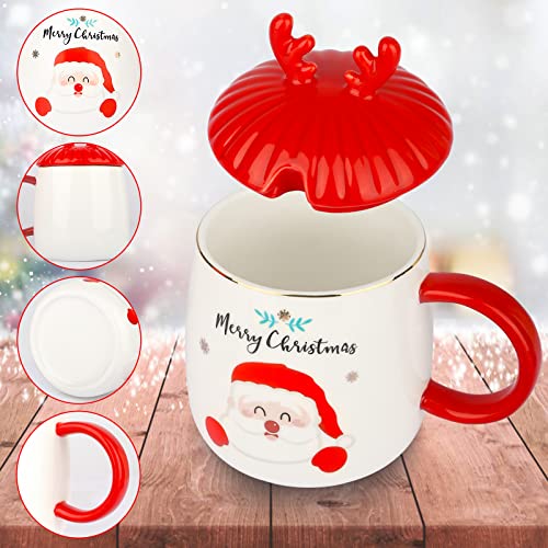 🎅🏼【Rücksichtsvolles Design】 Der Weihnachtskaffeebecher ist mit einem staubdichten Becherdeckel, Hitzeschutz und Spritzschutz ausgestattet und ein Löffel kann fest platziert werden. Abgerundeter Griff für einen bequemen Griff und verbrennt sich nicht die Hände.