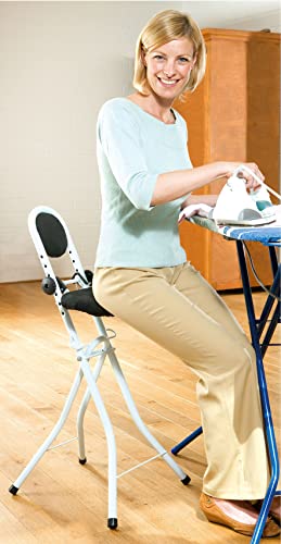 Praktische Unterstützung im Haushalt: Die Bügelstehhilfe unterstützt Sie zuverlässig bei allen zeitintensiven Arbeiten, z.B. beim Bügeln, Kochen oder bei der Arbeit am höhenverstellbarem Schreibtisch. So verschaffen Sie sich eine entspannte Haltung. Der Sitz ist dabei mit bis zu 100 kg belastbar.