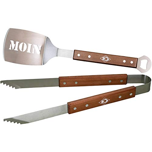 Grillbesteck mit Lasergravur auf dem Holzgriff, bestehend aus Zange, Gabel und Wender, Material: Edelstahl/Holz, Größen: Länge ca- 40 cm