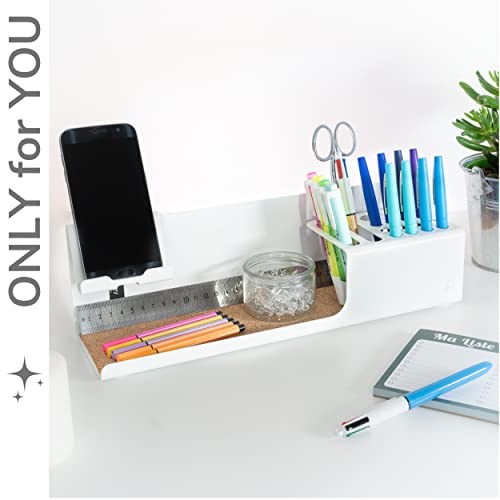 ▶ [ SCHREIBTISCHORGANIZER – ELEGANTES, EINFACHES, ROBUSTES UND LANGLEBIGES DESIGN ] ⭐ 100% mattgrau eloxiertes Aluminium mit einem Hauch von Kork ⭐ Geschützt durch Kufen an der Unterseite ⭐ Zur Aufbewahrung von Bleistiften / Markern / Scheren / Kugelschreibern / Markern / Schlüssel / SD-Speicherkarte / USB-Stick / Prospekthalter ⭐ Ihr Mobiltelefon/Smartphone in Reichweite mit der Möglichkeit, es aufzuladen ⭐ Auf dem Schreibtisch, am Bett, im Flur als Taschenorganizer, für zu Hause oder im Bür