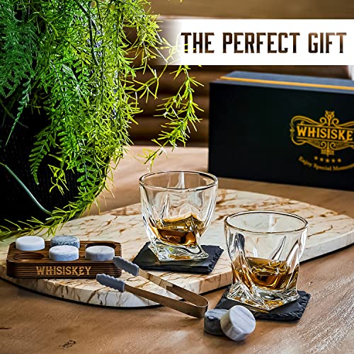 ✅ KOMPLETTES SET – 6 Luxuriöse Whiskeysteine – 2 Gläser (2×250 ml) – Zange – 2 Untersetzer