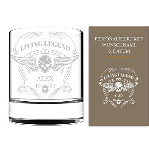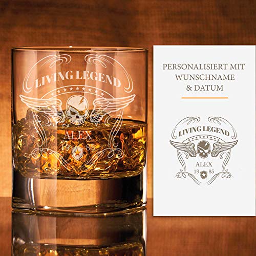 Details: Whiskey Glas mit Gravur (Name & Datum) I originelle Geschenkidee mit rockigem Totenkopf Design – ausgefallene Geschenke…