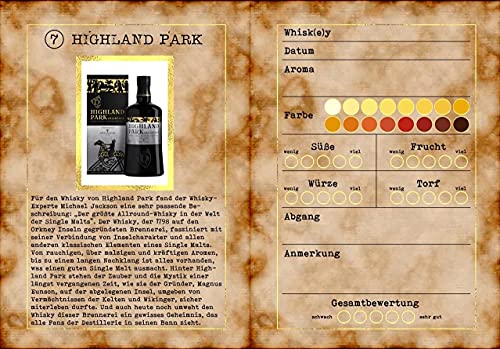Zu dem Adventskalender erhalten Sie eine 56-seitige Verkostungsbroschüre, die neben einer kleinen Einführung zum Thema Spirituosen-Verkostung, eine informative Beschreibung zu jeder enthaltenen Destillerie sowie eine kleine Produktabbildung enthält. Nebenan haben Sie Platz für Ihre eigenen täglichen Verkostungsnotizen. Die Verkostungsbroschüre des Whisky Premium Adventskalenders erscheint dieses Jahr in neuer Optik.