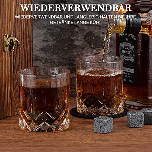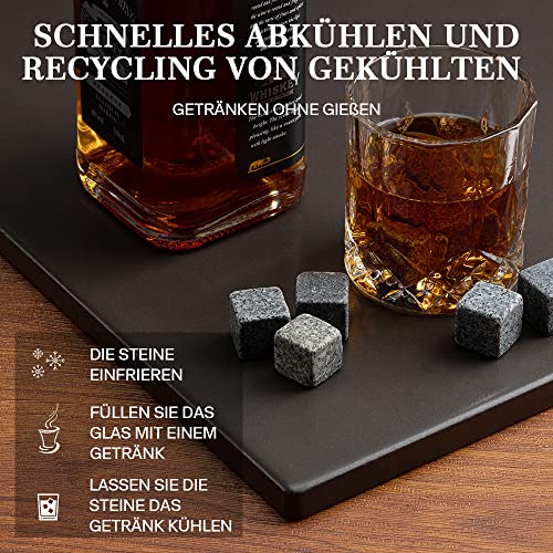 🥃BEHALTEN SIE DEN GESCHMACK: Unser natürlicher Whiskystein kann den Whiskey kühlen, er schmilzt nicht wie Eiswürfel und verändert den Geschmack nicht. Für alle Getränke geeignet: Ideal für Whisky, Scotch, Wein, andere Spirituosen und sogar alkoholfreie Getränke.