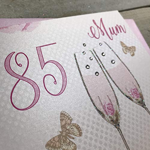 Details: White Cotton Cards SS42-M85 Glückwunschkarte zum 85. Geburtstag, Motiv: Champagnergläser, rosa Rosen