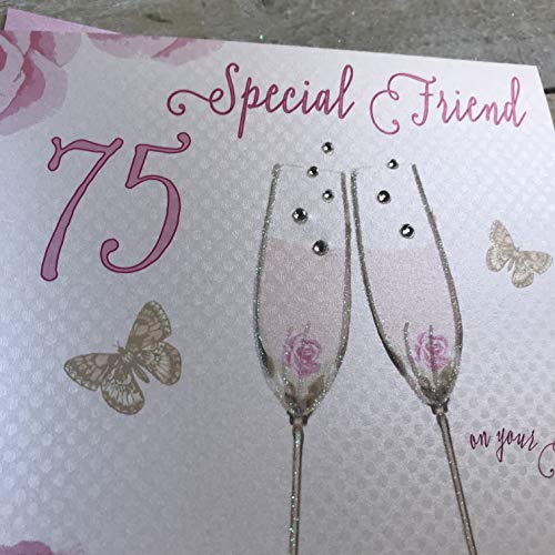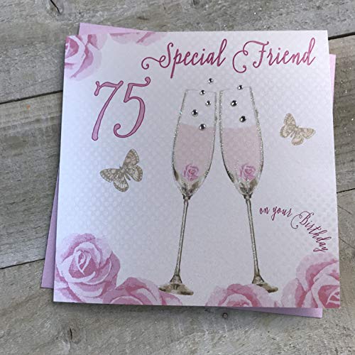Details: WHITE COTTON CARDS SS42-SF75 Geburtstagskarte zum 75. Geburtstag, Sektgläser, rosa Rosen