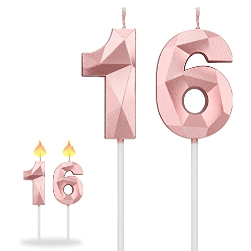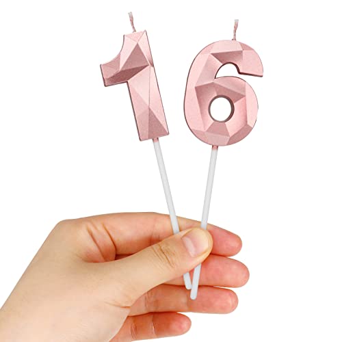 Details: Winkwinky 16. Geburtstag Kerzen Kuchen, Rosa Geburtstagskerzen Nummer Kerze 1 und Ziffer Kerzen 6, Tortendeko Kerzen…
