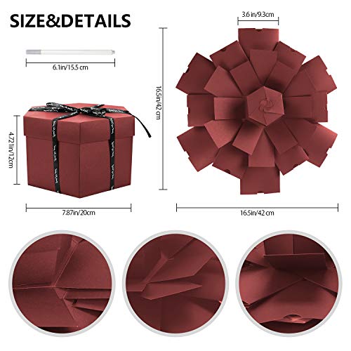KREATIVE EXPLOSIONS-GESCHENKKISTE: Die Explosionsbox sieht aus wie eine gewöhnliche schwarze Box, aber wenn Sie sie öffnen, werden Sie viel Überraschung finden: Die Geschenkbox mit 6 Gesichtern, 5 Schichten und 12 Taschen. Im geschlossenen Zustand sieht die Box aus wie eine Geschenkbox. Sobald sie geöffnet ist, explodiert die Geschenkbox, alle Seiten fallen zurück, um eine große Mufti-Kartenschicht aufzudecken und all die Liebe zu zeigen, die Sie in sie gesteckt haben.