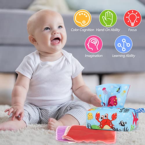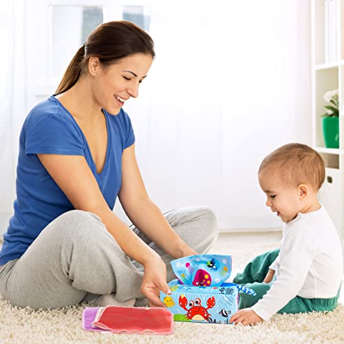 🎁Multifunktionales Spielzeug Farbenfrohe Tissue-Box: Seidenschals mit satten Farben fördern die Farbwahrnehmung des Säuglings und fördern die visuelle Entwicklung des Babys. Die Taschentuchbox hat ein einzigartiges Design und passt sich dem Griff Ihres Babys an.Es kann den Spaß am Eltern-Kind-Spiel verbessern, die Hand-Augen-Koordination der Kinder und die frühe Vorschulentwicklung trainieren.