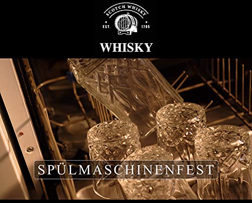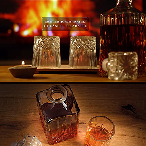 [5 Teilig] – Hochwertiges Whiskey Set aus 6 Whisky Kristallgläsern für 285 ml & 1 Whiskyflasche / Karaffe mit Verschluss für 900ml Inhalt. Für die elegante Präsentation und vorzüglichen Genuss Ihrer Spirituosen