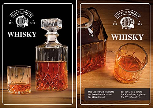 Details: WOMA – Whiskey Karaffe Set – 5er & 7er Set – Whisky Gläser + Kristall Karaffe für den vorzüglichen Genuss – 4 Scotch…