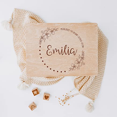 EINZIGARTIG UND INDIVIDUELL- Jede unserer Erinnerungsboxen wird mit den Geburtsdaten: Name, Geburtsdatum, Gewicht und Größe ganz nach deinen Wünschen graviert und ist somit ein echtes Unikat.