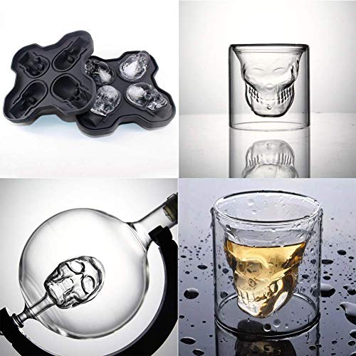 Wenn es Probleme mit dem Glas oder Karaffe gibt, kontaktieren Sie uns bitte und wir werden ein neues Produkt ersetzen. 【Totenkopf-Eiswürfelformen】: Unsere Silikon-Schädel-Eisform macht Ihre Getränke fantastisch. Eine Eisform kann 4 Eiswürfels herstellen. Verwenden Sie den Trichter, um einfach Wasser oder Getränke in ihn zu hineinschütten und dann in den Kühlschrank zum Einfrieren. Füllen Sie 3/4, nicht überfüllt, um ein wünschenswertes Ergebnis zu erzielen.