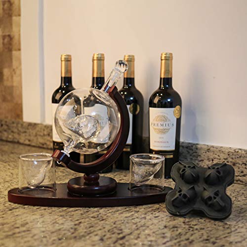 Entwickelt, um dünn und leicht zu sein, damit Sie es einfach auf dem Pinienholz-Halter tragen können. Jeder Likör-Dekanter enthält einen faszinierenden schwebenden Schädel aus Glas für ein unheimliches Gefühl. Mit einem Glasstopfen mit einer Gummiunterseite, kann er den Geschmack und das Aroma Ihrer Lieblingsgeister halten.
