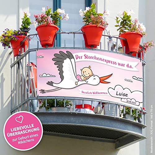 ❤️ XL BANNER ZUR GEBURT (160 x 70 cm) MIT STORCH & BABY: Willkommen zu Hause! Der Storchenexpress war da. Süßes Geschenk und Überraschung für Mama und Baby